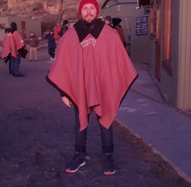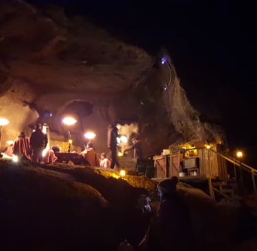 Ah, detalhe importante: antes de entrar na caverna, nos deram uma vestimenta típica (o nome eu sinceramente não lembro, mas parecia algo entre um poncho e uma manta andina). Além de proteger do frio, deu um charme especial à experiência — parecia que realmente tínhamos voltado no tempo.